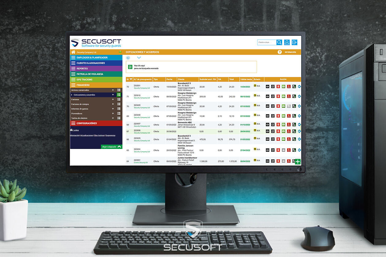 Secusoft tiene un sistema incorporado que le permite elaborar fácil y rápidamente cotizaciones, acuerdos y confirmaciones de pedidos. Breve y conciso, con una cotización clara y con el logo de su empresa. La cotización contiene un espacio para firmar para su aprobación y está lista para imprimir y enviar al cliente (potencial). A través de Secusoft podrás enviar el presupuesto en formato PDF al cliente con una sencilla acción.